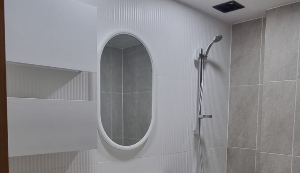 최근 문의가 많았던 무광 화이트 템바보드 타일을 활용한 욕실 리모델링 사례입니다.