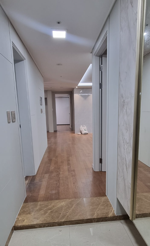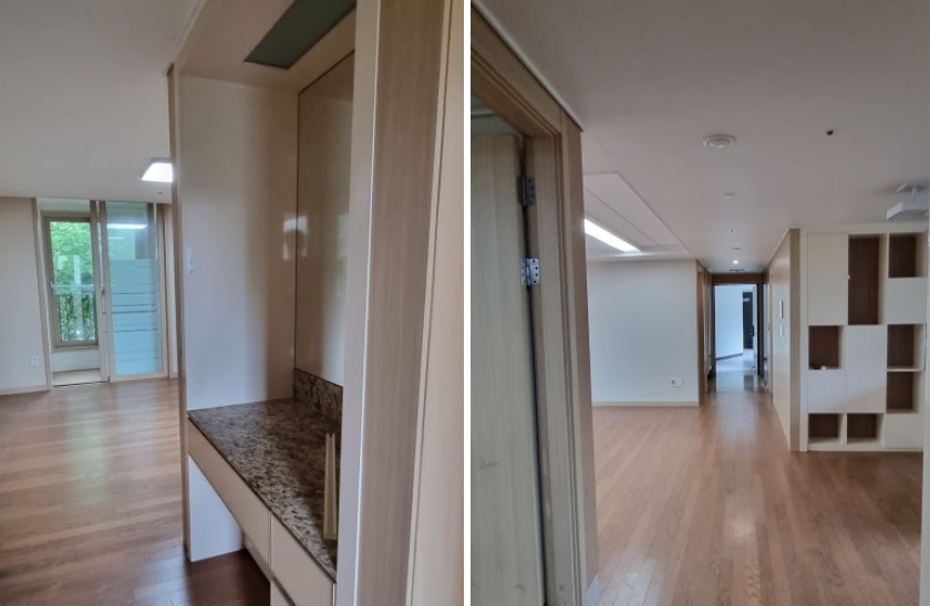 바닥 강마루는 상태가 양호해 재사용하기로 결정하여, 철거 단계부터 보양을 꼼꼼하게 진행했습니다.